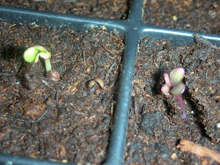 I've yet to successfully save my own brassica seeds. There's a cabbage in cold storage to put back in the ground this spring, and some Winterbor kale heavily mulched under the snow, and I am just plain determined to beat the frost this year for some broccoli seeds. The red cabbage on the right is seed from 2005, they are a bit reluctant to wake up, time for some new seed.